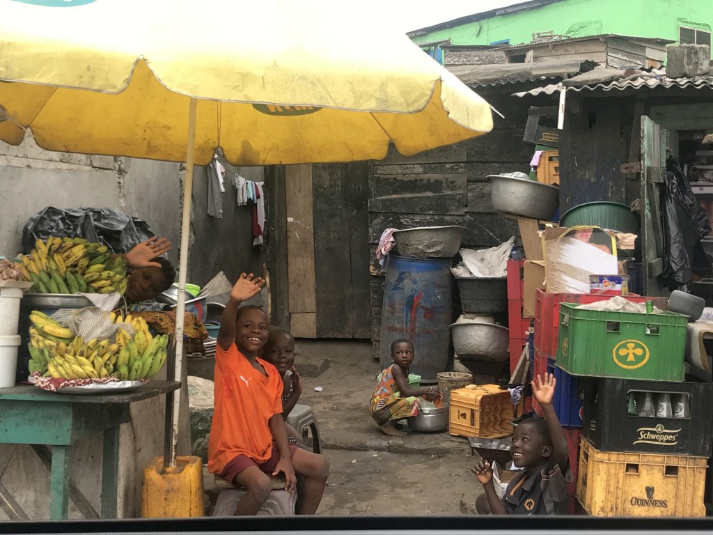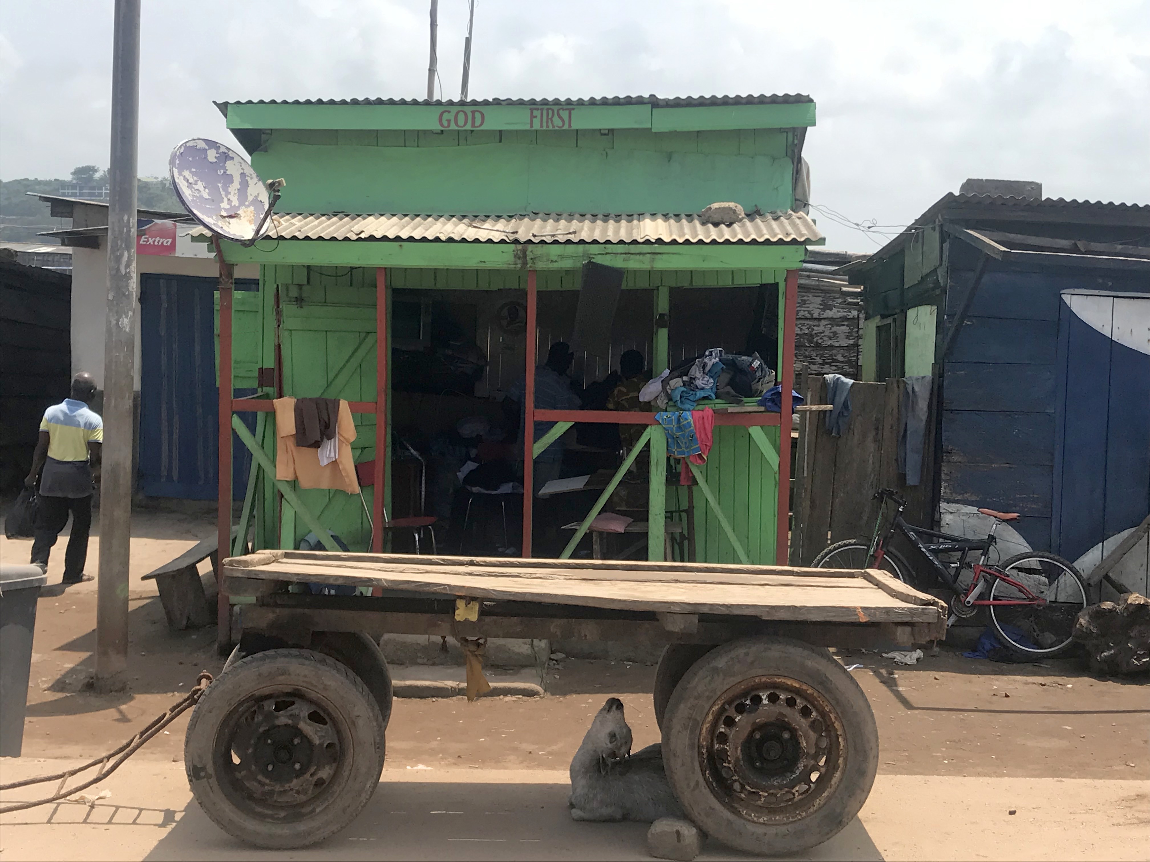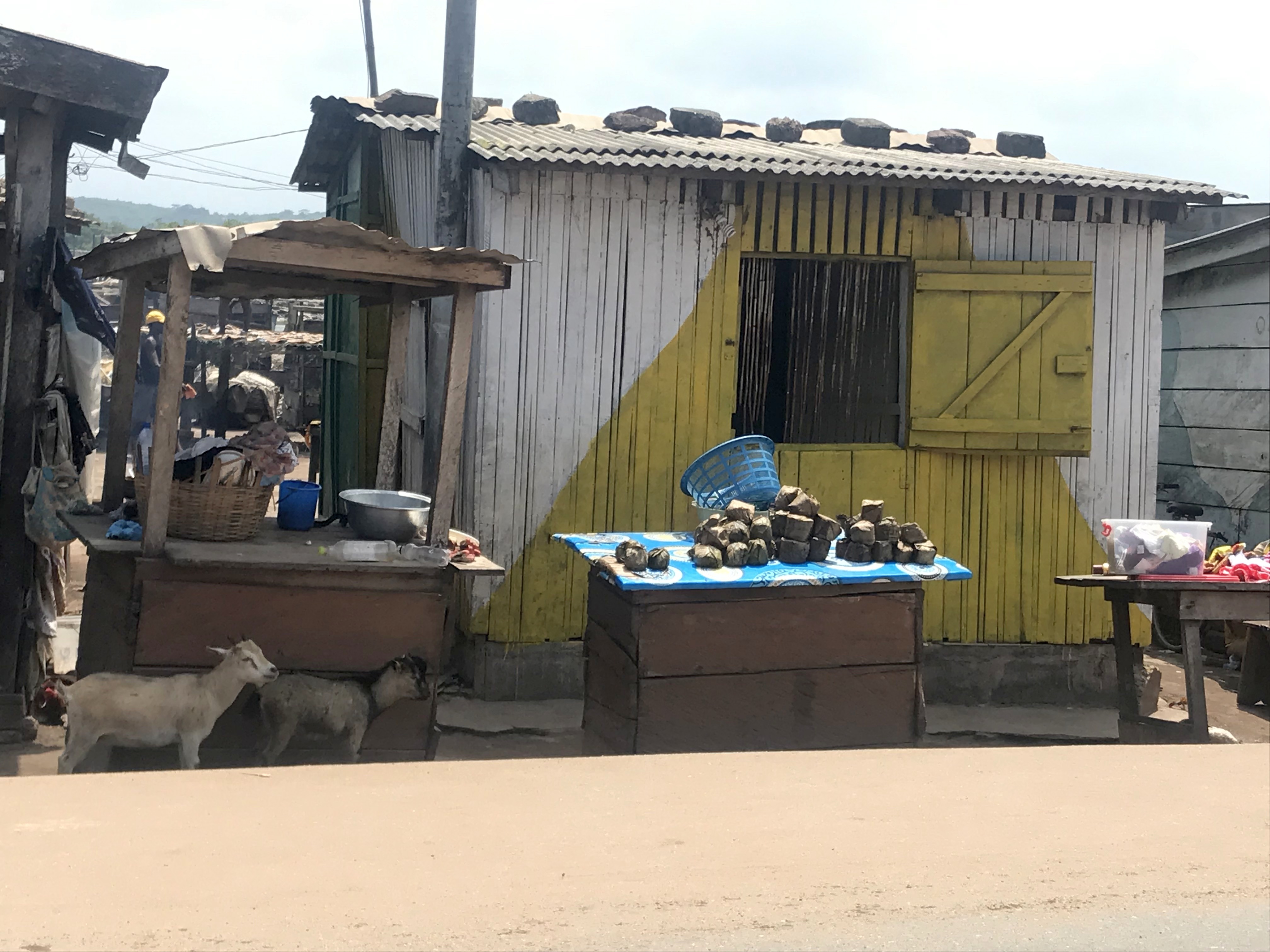 As the landscape becomes more green and lush, we see rows of pineapples being grown and harvested and enjoy the usual quirky sites of Ghana roadside life – the ever present blurs of bright colours of container stores, seen from the car windows, mean that boredom is impossible on a road trip here. These vendors sell snacks, religious statues, toiletries, car parts, alcoholic beverages (should the crazy traffic all get too much) and even coffins. Old colonial buildings stick out and I wonder about their past lives. We leave the city of Accra behind, as well as thoughts of kids who are on school holidays, and our usual Tuesday morning routines.