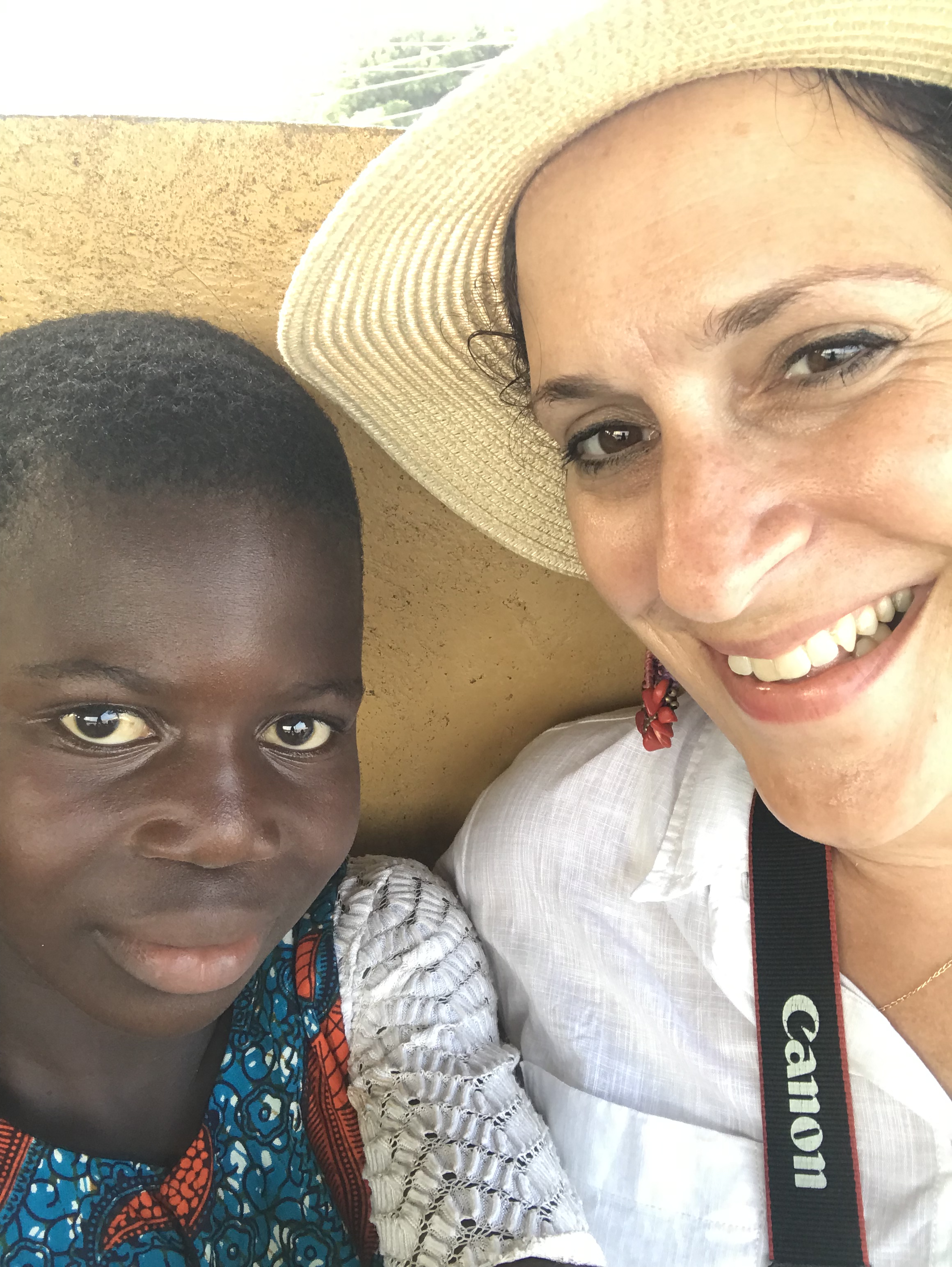 The paramount Chief is carried in on a palanquin draped in white cloth. He has white paint down his arms, a thick leafed garland around his neck, and bracelets of twigs and foliage around his wrists. The Elmina people applaud as he now enters the shrine area. I make friends with two delightful children who are intrigued with my camera and phone, they have the most expressive eyes and are happy for me to take their photo and to see themselves on the screen.