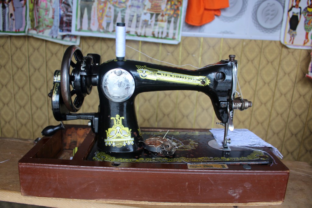 For those of us who sew, how extremely fortunate we are and totally take for granted that with the push of a foot pedal our electric machines whirr and purr and form neat, uniform stitches! Victoria is a seamstress who sews under the leaves of a tree close by, and on one of my walks around our neighborhood she showed me how her beloved twenty-year-old companion works. Extra skill is required in needing to always sew with two hands; the left one holding the fabric you are working with, and the right one winding the machine up, so that it will sew a few centimetres of stitching. Then 5cm later needing to repeat the winding up process again! Respect!