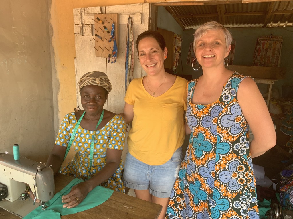 My talented designer friend Johani who her masters in Fashion Design, and I with a lovely lady sewing in a village, on the way to Wli falls.