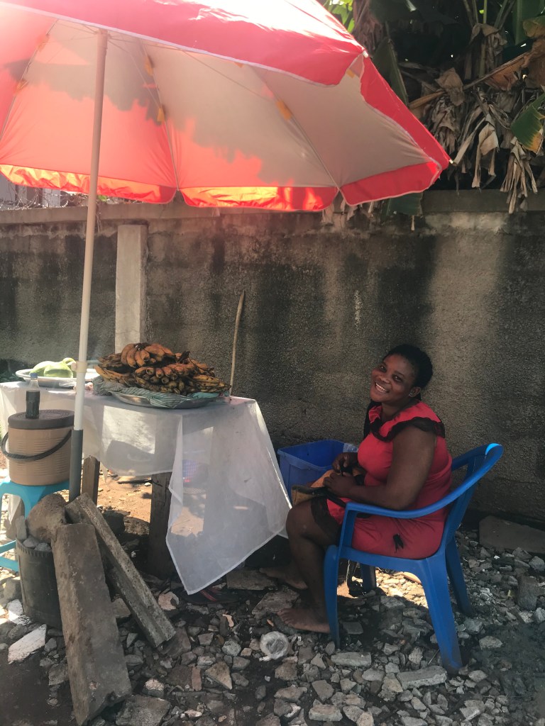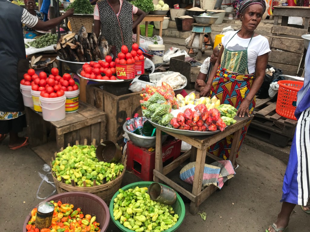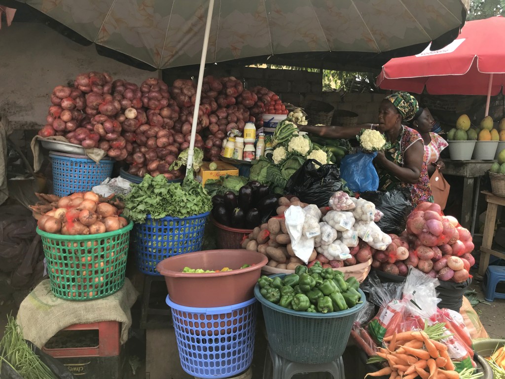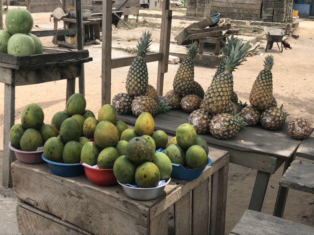 For local produce here I do always choose to support the Ghanian ladies who sit on the pavements with their beautiful pyramids of fruit and vegetables, mindful of the fact that they don’t have fridges and the further pressure they must feel to sell their produce quickly! ‘My vegetable lady’ is something you hear a lot here and Jeanette who sets up her table nearby our home is that lady to me. The constant supply of delicious bananas, mangoes and paw paws in our house are all thanks to her and she regularly shows extra kindness and ‘dashes’ me a free fruit!
