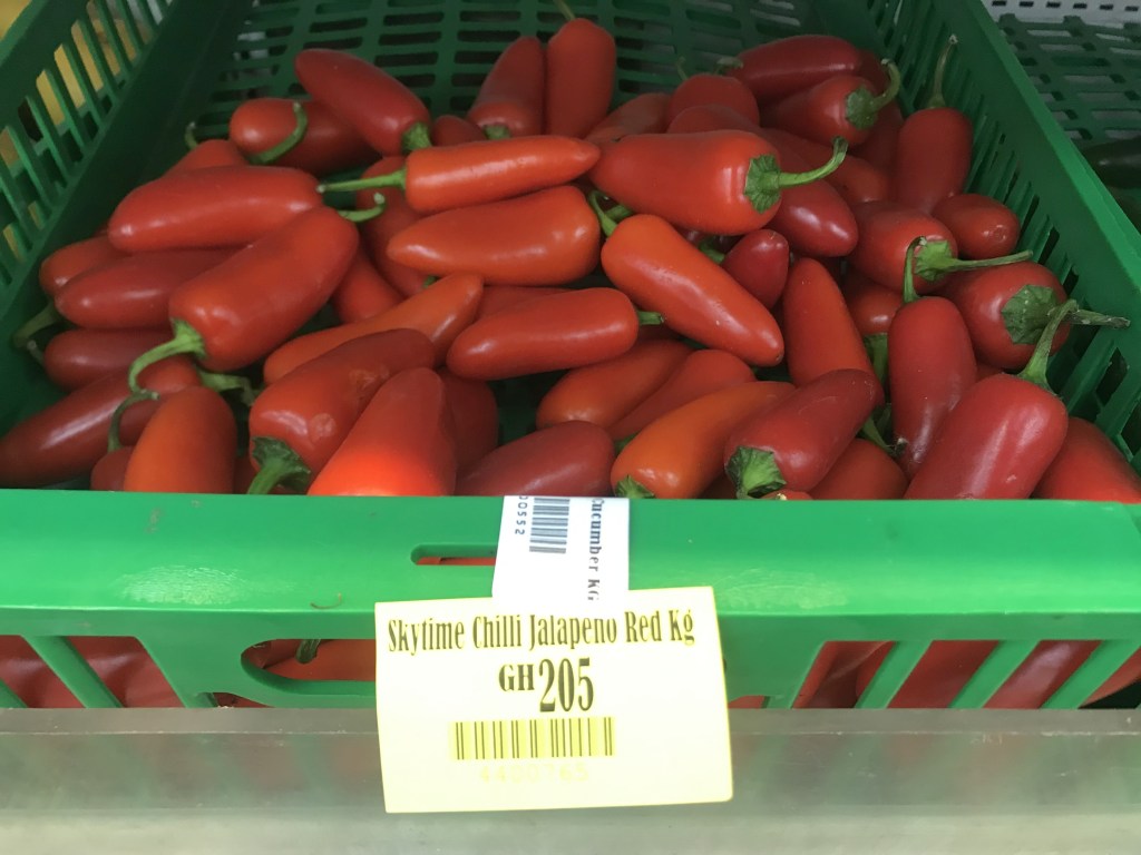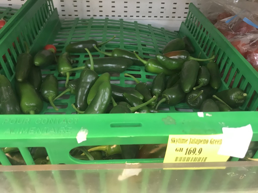 Regularly a grocery run involves visiting all four shops anyway as certain items are so ridiculously overpriced at certain places, you just refuse to pay what they are asking and then need to seek the same product out elsewhere where it is more affordable. Like the Jalepeno peppers that I saw last weekend at Maxmart, lying there in all their red and green glory for 200 cedies for a kg, that’s R600!! However shiny and fresh they are, that is absolutely Insane!