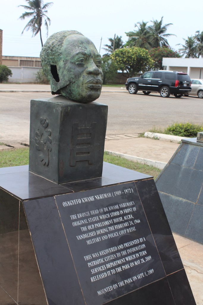 A beheaded statue up ahead causes the kids to laugh at how ridiculous it looks to see a body missing a crucial part that is now resting next to it and a pac man bitten chunk missing from his leg. But of course the happenings that lead to this aren’t humorous at all. This headless statue of Nkrumah was decapitated during the above-mentioned coup in 1966, and his head that is now positioned next to his body was later returned by a citizen and released to the park in 2009.