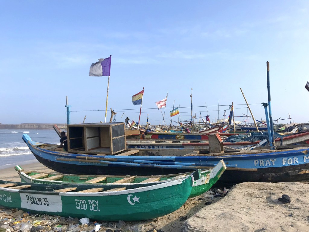 The salty smell of the ocean air and watching Ghanaian fishing boats out at sea