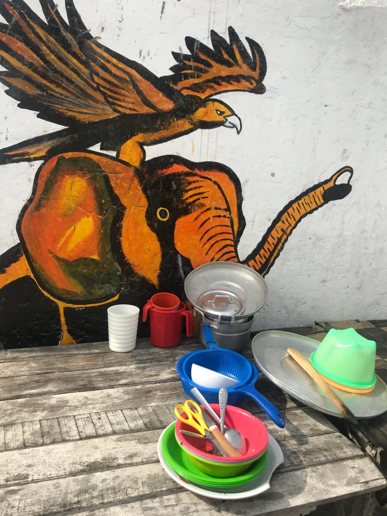 The vibe is laid back and relaxed, a small white ball is hit back and forth across a ping pong table in an open space and groups of children are gathered around an open-air foosball table. The tiny armless, immobile soccer players who are given movement through these energetic kids, are the same colours as a further reminder of previous British rule – the union jack painted on the outside of the table.