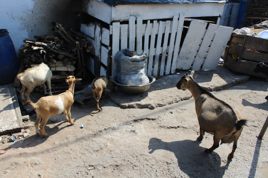 The contents of domestic life as we know it – usually concealed in cupboards, drawers and multiple rooms, is on full display everywhere here; piles of silver pots, pans and big bowls tumble into the courtyards and pavements, stacks of wood, buckets, prayer mats, toys, plastic containers of oil, crates of beer and small goods for sale can be seen as we wander through the streets. Hungry goats sniff around hopefully while a pregnant girl goat who looks like she is about to pop, looks on.