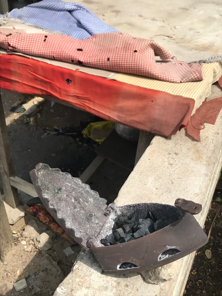 We pass the masked tailor who still uses a coal iron while he sews! And we admire bright murals on walls.
