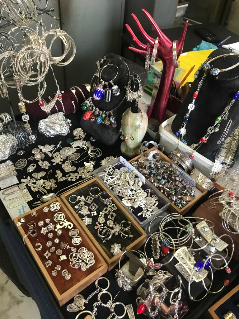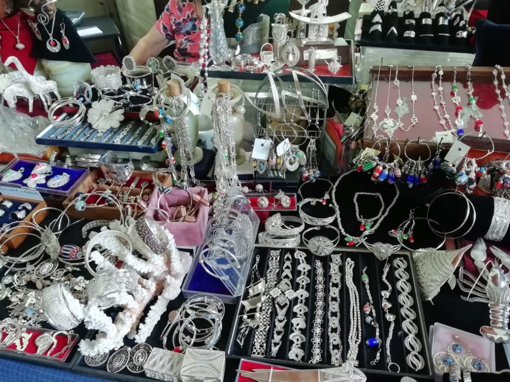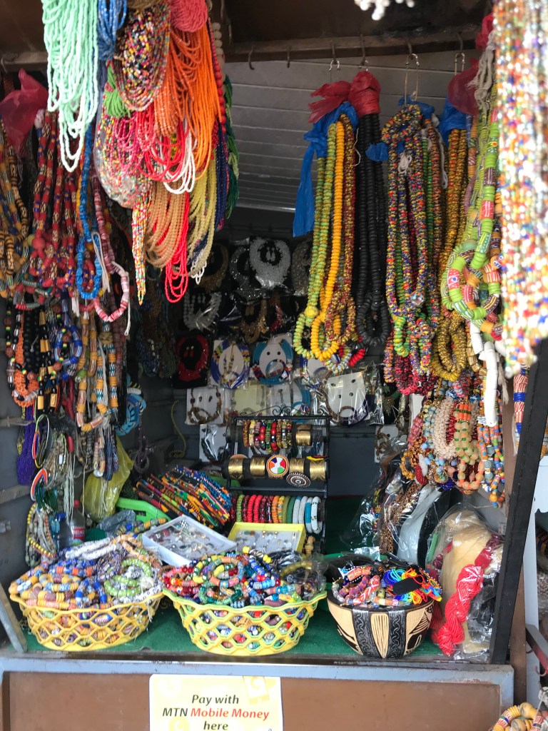 Probably my favourite gem on Oxford Street, situated just when the curio shops stop and almost opposite Shoprite you will see a white wall with a black sign with the word ‘Hakim’ on it. Mrs Georgette Hakim came here with her husband in the 50’s or 60’s for his job, and has been selling her silver and gold jewellery for many many years. Her intricate, filigree designs are unique and stunning. She sells earrings, bracelets, necklaces, Adinkra symbol cufflinks, special charms and continent shaped pendants should you wish to keep Africa extra close and wear her around your neck. Her tables and stands are covered in hundreds of once off pieces including the sought-after Chevron beads.