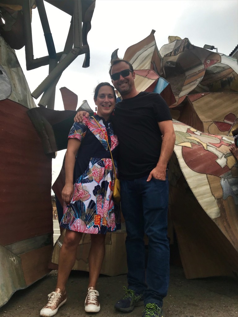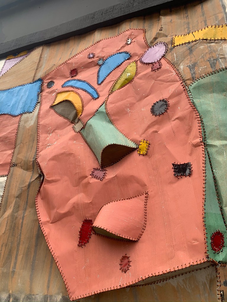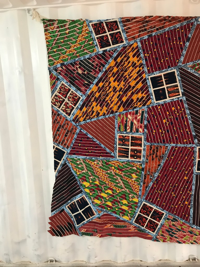 After our first visit to this piece I reached out to the Ghanaian artist Tei Huagie, who created this piece, on Instagram and after scrolling through some of his previous photos some lovely synchronicities emerged – I discovered that he is also the mastermind (and hands) of the incredible strip quilt/patchwork African wax piece that I’m standing in front of in the cover photo of my blog. That photo was taken when my friend Lotte and I went to the ‘Wax Fest’ in 2019 which was a lovely event that showcased everything to do with African wax print textiles and we were so taken by these sheets of various red and blue fabrics pieced together.